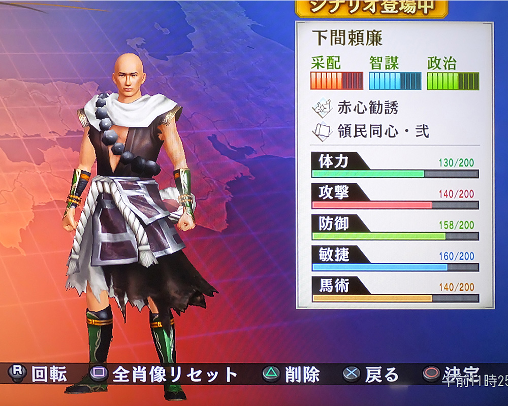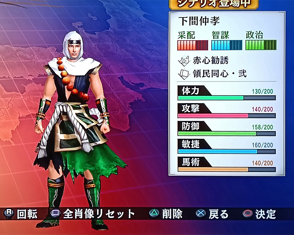 自分が作ったエディット武将と、既存のモブ武将のビジュアルを