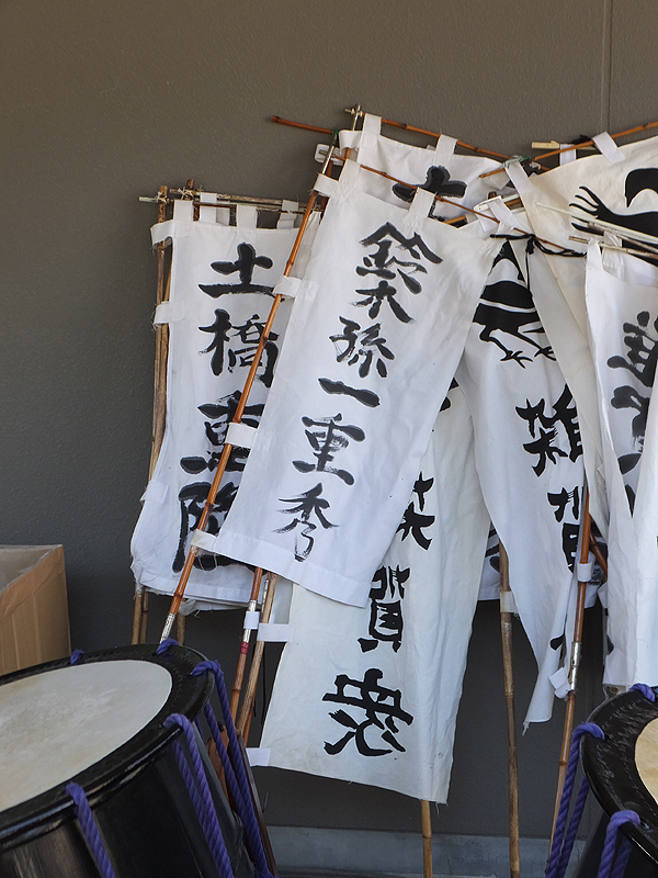 旗は武者行列隊が持っていたもの。後で一つ貸していただいちゃいました。