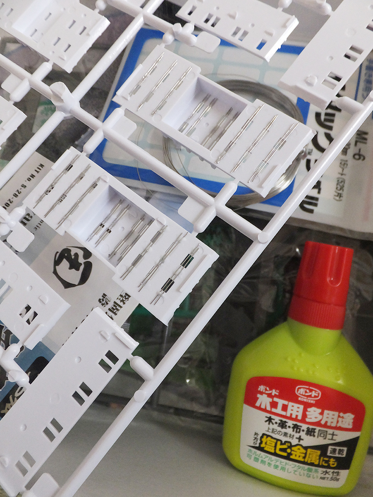 材料は100均で調達し、ニッパーで小さく切ったものをボンドで貼ります。